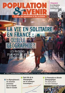 Living alone in France: what geography? The reasons behind an increasingly common way of lifeN° 775, 2025/5 - pagesPages 2 to 2Front matterPages 3 to 3Population decline: a new process that is spreading worldwideBy Gérard-François DumontPages 4 to 7Living alone in France: what geography?By Mickaël BlanchetPages 14 to 16What part does demography play in economic growth? By Bernard LandaisPages 17 to 19Venezuela's demographic collapseBy Gérard-François Dumont, Jean-François Léger